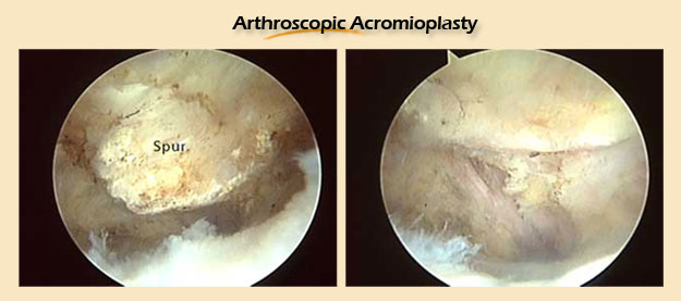 The first stage of the procedure usually involved removal of the overlying bone spurs in the anteroinferior edge of the acromion bone.