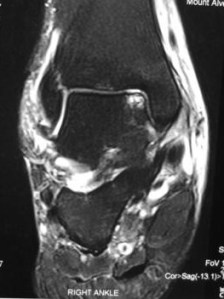 There are 2 common causes of persistent pain that just simply won’t go away after an ankle inversion sprain.  The first is formation of scar tissue inside the ankle joint.  The other is an osteochondral lesion of the talar dome.