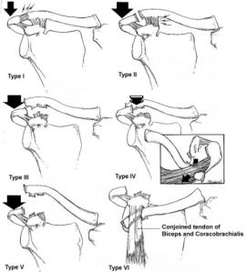Classification of Acromio-clavicular Injuries Type I to VI