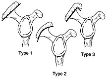 Hence a person with type II or type III acromion is more likely to develop shoulder impingement.  This may, over time, become a torn cuff tendon.