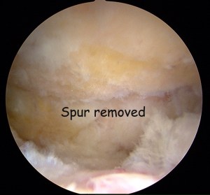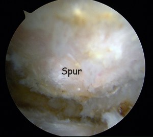 This picture shows the bony spur that was seen in the x-rays shown above: