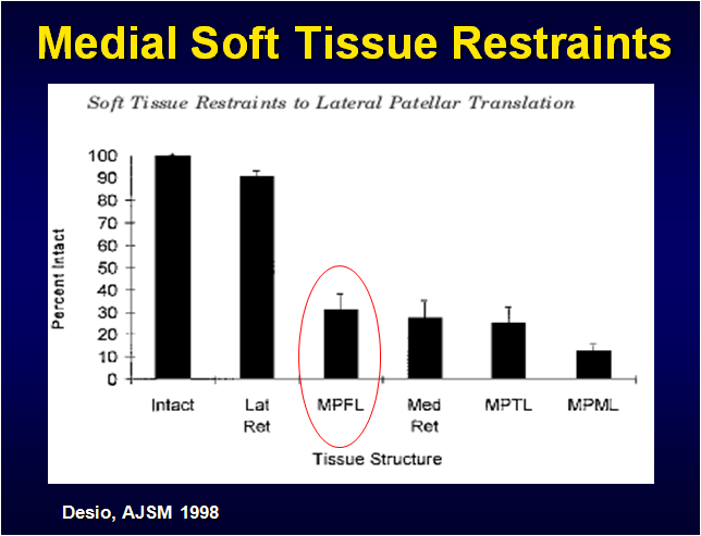 In cadaveric studies, one can see that if the MPFL is cut, the restraint to lateral kneecap dislocation becomes much less.