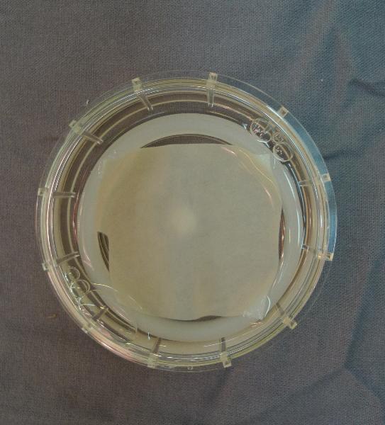 The implant is an opaque, off-white membrane approximately 1mm thick and is supplied in about 18ml of colourless solution.