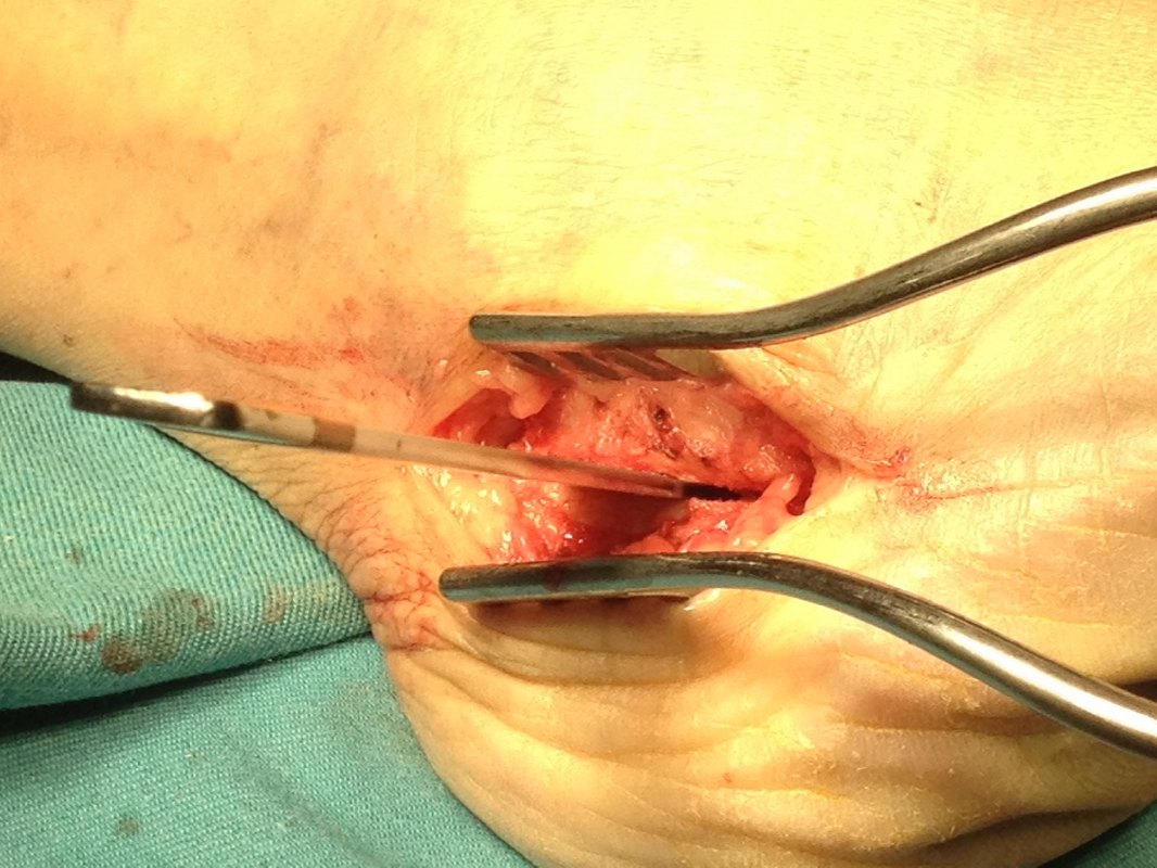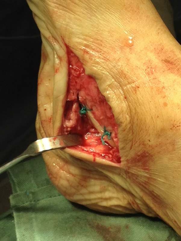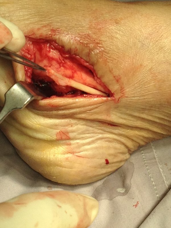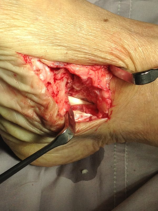 Tenosynovectomy – removing the inflamed tendon sheath around the PTT.