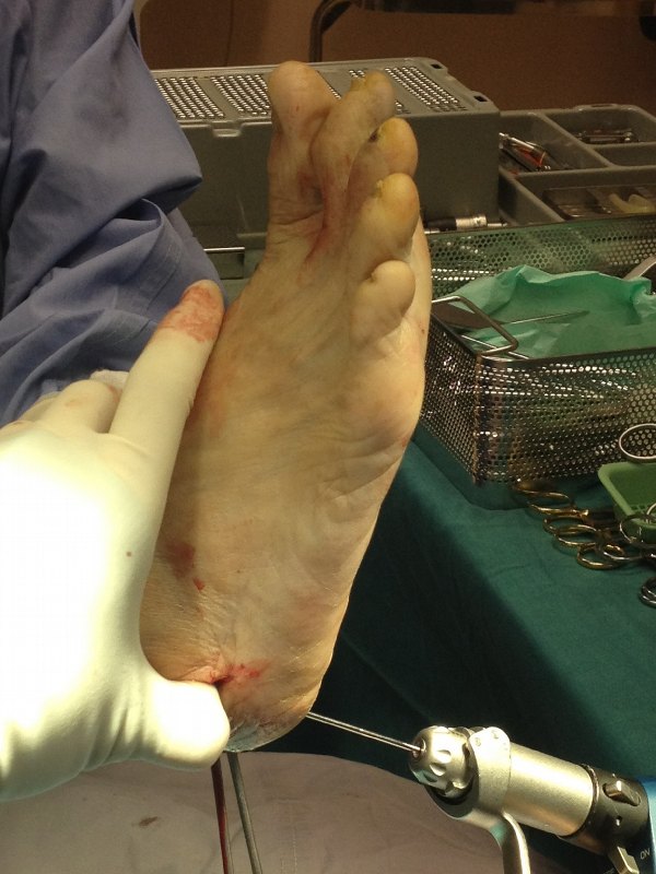 I performed a tendon transfer – Flexor Digitorum Longus (FDL) transfer as well as a medial calcaneal osteotomy.