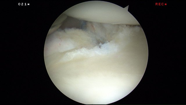During key-hole surgery to his left shoulder, a tear in the posterior inferior glenoid labrum could be seen. This was the cause of his persistent vague shoulder pain.