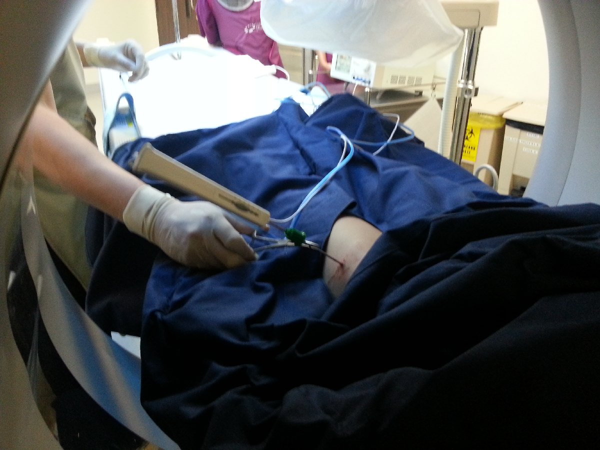 This girl was crying in pain by the time the CT-scans were done. It was obvious that something was wrong. The CT-scan confirmed the presence of an osteoid osteoma of the lesser trochanter of her left hip with pain over her left thigh.