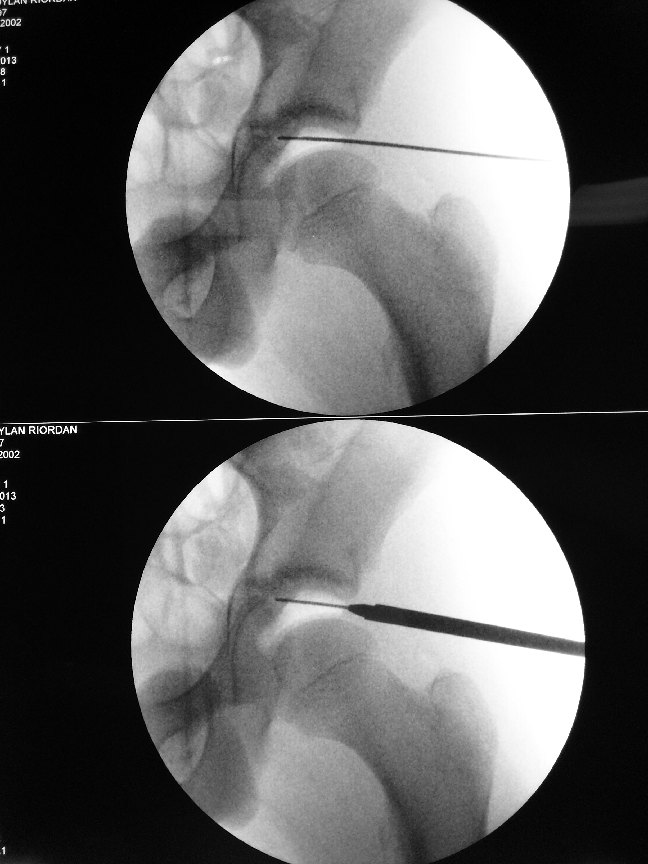 I prefer to perform a keyhole procedure to treat the infection in the hip. This involves hip arthroscopy.