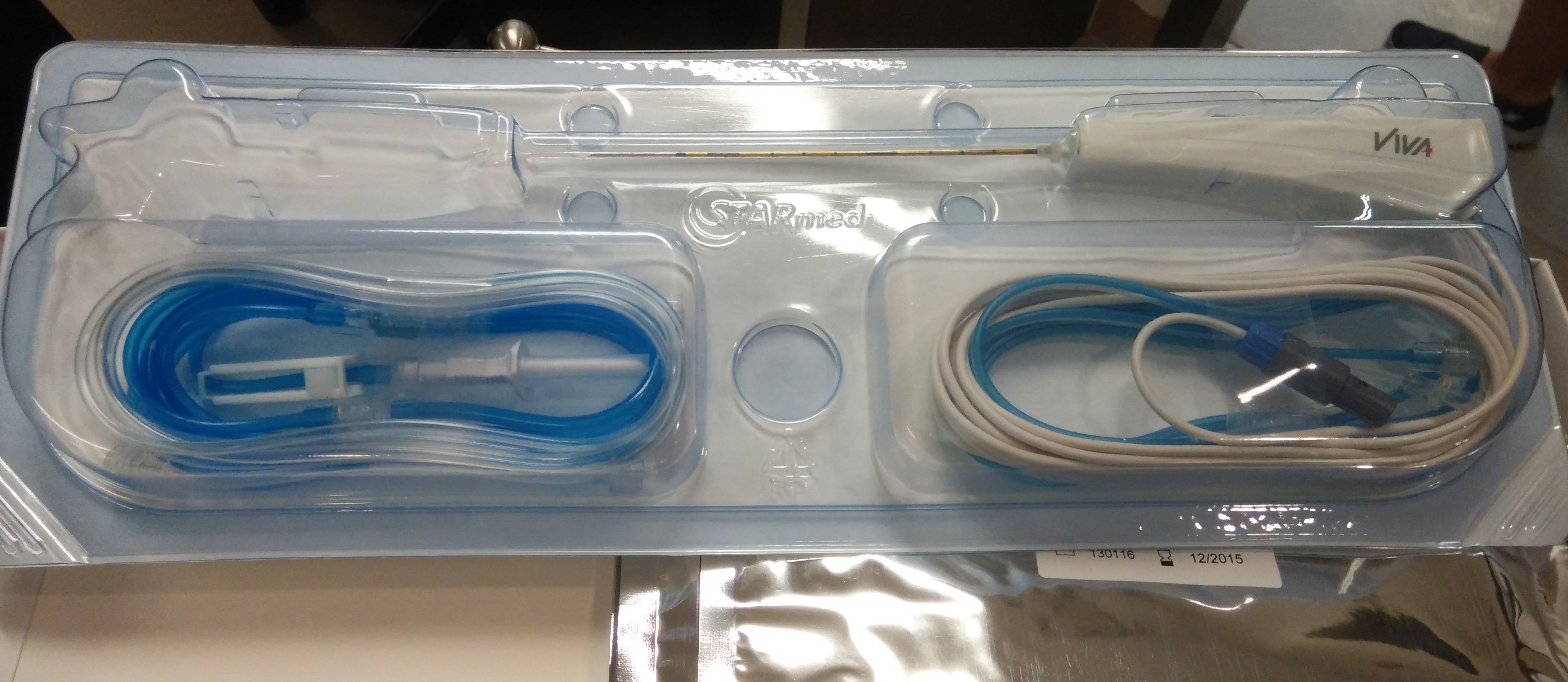 The radiofrequency probe is next inserted into the tumour and the heat energy generated by the machine is used to ablate the tumour.