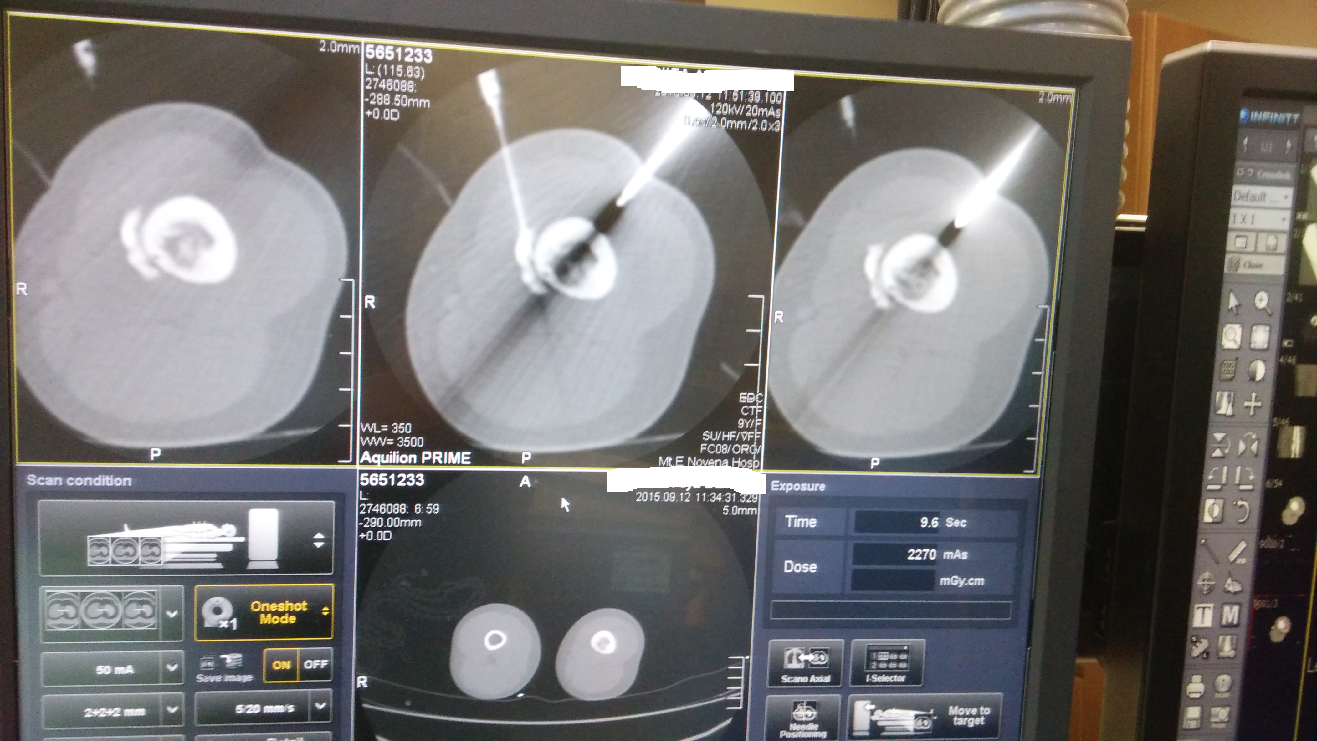 Percutaneous CT-guided radiofrequency ablation of the lesion was performed under general anaesthesia in the Radiology Suite.