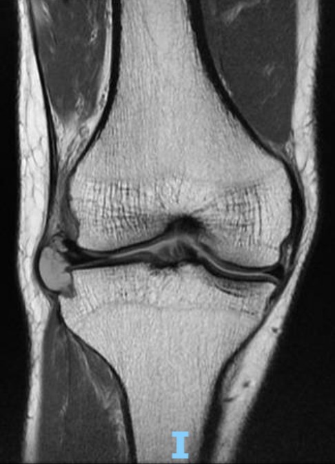 Examination of his right knee showed a cystic swelling on the lateral aspect of his knee at the level of the lateral joint line. There was lateral joint line tenderness.