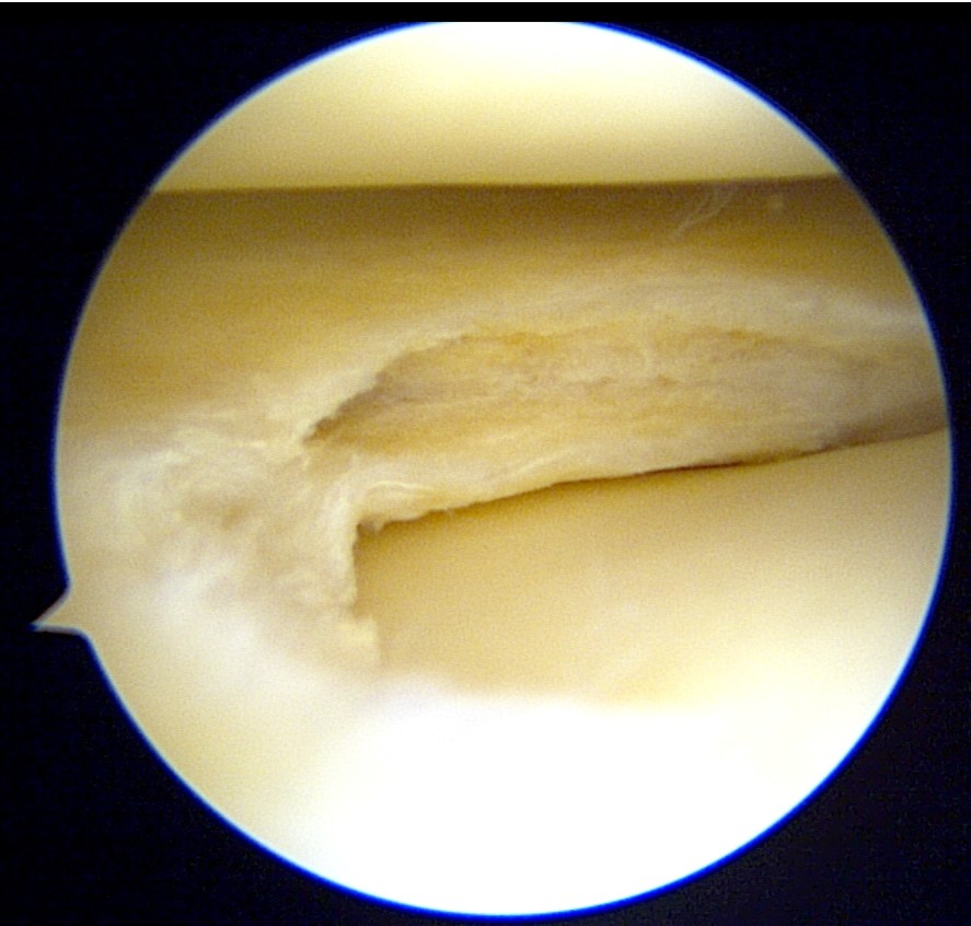 During arthroscopy, a horizontal cleavage tear in the lateral meniscus could be seen.