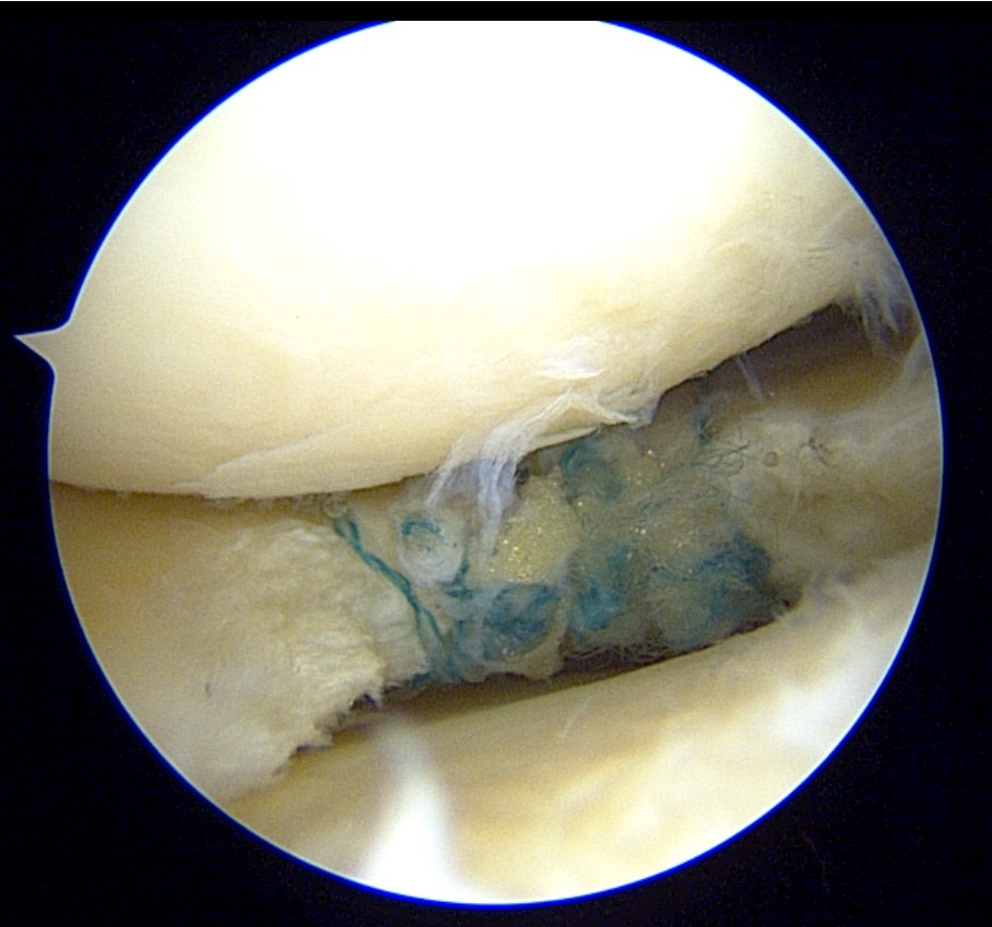 • Complete meniscal healing (no visible defect) in all patients undergoing second-look arthroscopy at 6 months (11/11